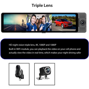 Mirror Dash Cam 4K 3-Channel Rückfahrkamera WiFi FHD 1080P GPS Nachtsicht